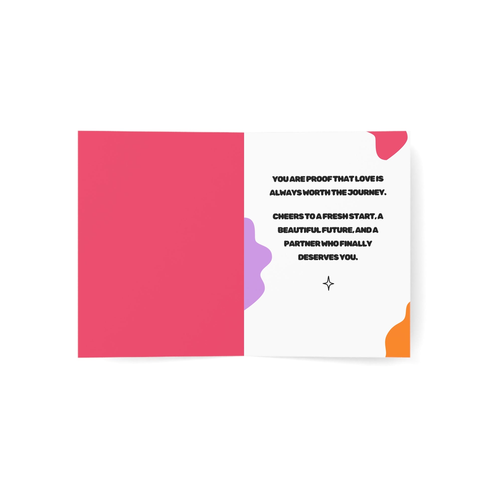 Inside: You are proof that love is always worth the journey. Here’s to a fresh start, a beautiful future, and a partner who finally deserves you.
